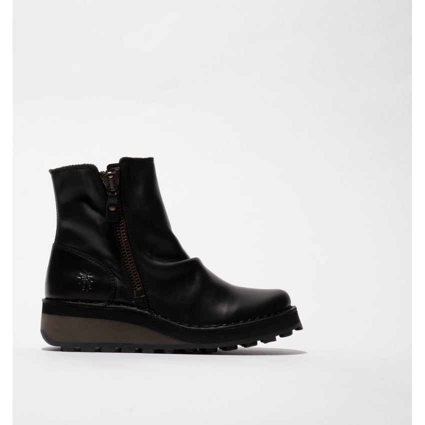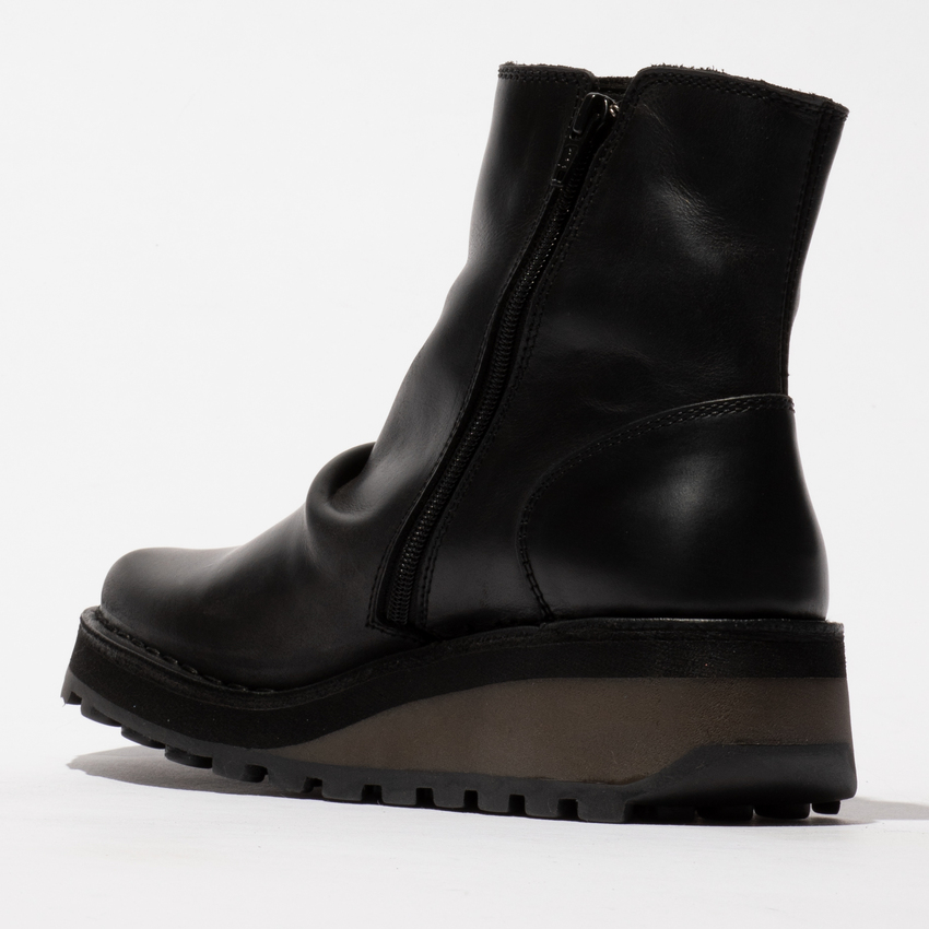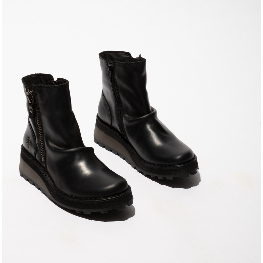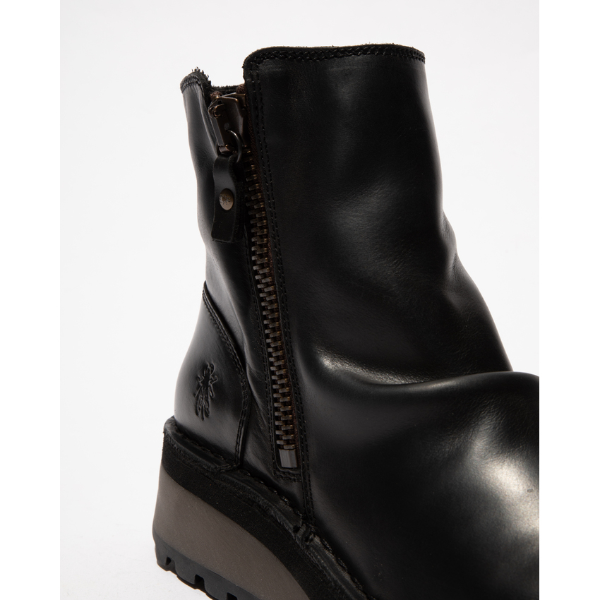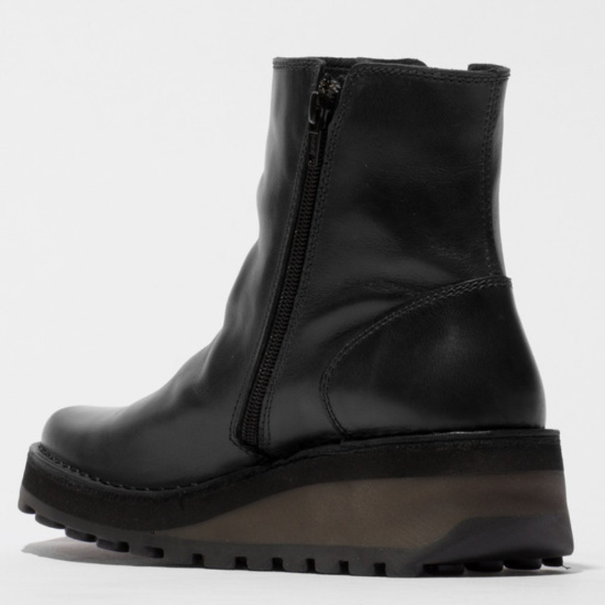 Fly London Hole HOLE146FLY Rug Black Zip Up Leather Wedge Ankle Boot